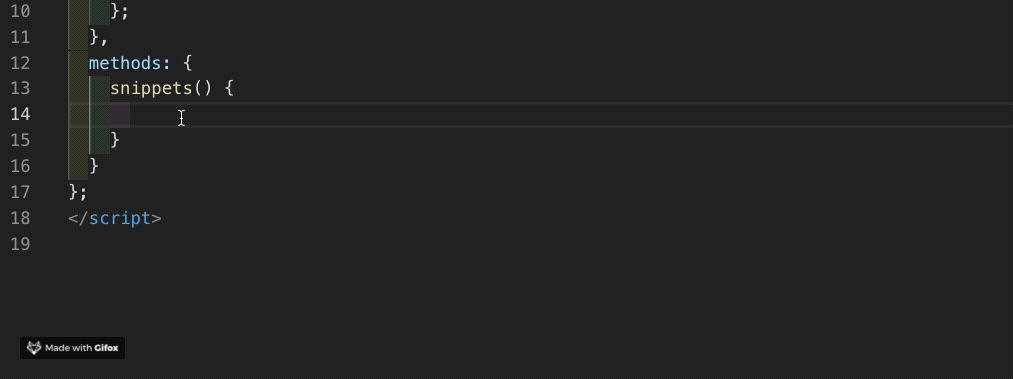"description": "this.$t" // snippets描述,当有多个匹配的代码片段时,可以用来识别